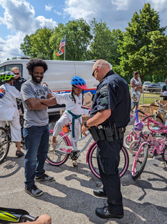 Representatives from Columbus Division of Police, Dublin Police, Franklin County Sheriff's Office, Gahanna, were there every step of the way, alongside the 614 Cadets, helping each child fit their helmet and select a bike. A big shout-out to Center Manager Roger Harper, whose gleaming smile reflected the joy and excitement of the day. Columbus Safety Director, Kate McSweeney-Pishotti, also joined us and was thrilled to watch the children receiving the bikes.