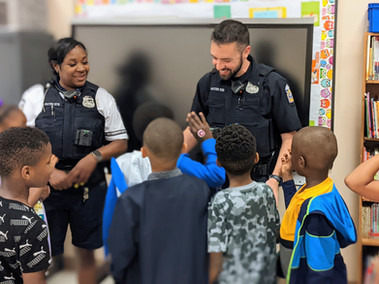 This event marked the beginning of our Summer 2022 programs and we had so much fun. Chief Becker read to the older kids and Officer Geoff Masters read to the younger ones, with Zone 1 Safe Streets officers split between the two groups. The kids loved Officer Masters--wanted to dress him up in his hat and sunglasses, get his autograph not just in their books but on additional pieces of paper, and get piggyback rides from him. (They really loved him.)