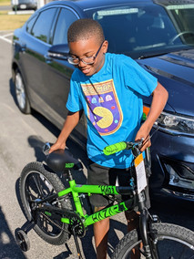 We ran out of bigger bikes at our Bikes & Badges event when Columbus Division of Police Commander Jeff Lokai was trying to help Charlie pick one out. Rather than give him one that wasn't the right size for him, we got his mother's information and arranged to meet them later.