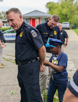 Chief Becker loves working with the community and officers so much that when we plan significant events, we first check his calendar to try to make sure he can come. He genuinely loves being involved, talking to people, being in substations, helping hand out items, and making a difference.