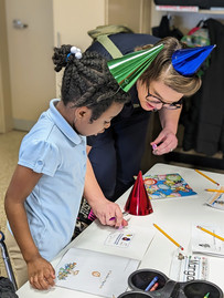 CPD read books to seven classes today, and every child got to take home a copy of the book. The officers also autographed the books for the kids. After Lieutenant Chris Lieb signed one, a child exclaimed, "He signed my book with a gold pen! Did you see that? His pen is gold!" Made us all laugh.