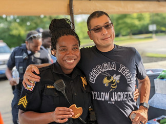 What a fun day we had yesterday on the West Side. Columbus Division of Police Zone 3 officers asked if we'd be willing to help them celebrate their accomplishments over the summer with a cookout, and we were thrilled to be asked. Our friend, Officer Julien Roffey, who usually runs the grill with Sergeant Andre Tate for events like Cops & Barbers and Bikes & Badges, picked up a new co-chef, Officer Stan Speaks, to serve his fellow Zone 3 officers.